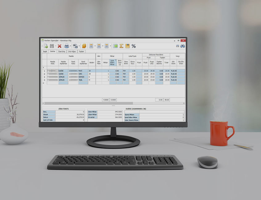 Konsinye alımlarınız için tedarikçi firmanıza sipariş verebilir ve bu siparişe istinaden ASN, irsaliye ve fatura işlemlerinizi biri birine bağlı olarak otomatik gerçekleştirebilirsiniz. Konsinye alımlarınızın satılan kısmı kadarını fatura sihirbazı yardımıyla kolaylıkla faturalayabilirsiniz. Faturalanmamış konsinye alış irsaliyelerinizi kontrol edebilirsiniz.