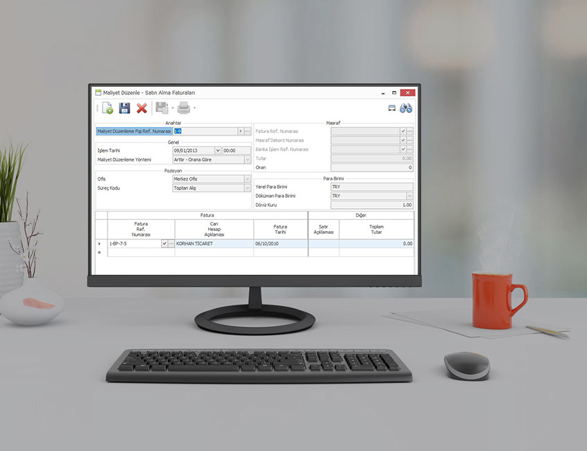 Seçilen satın alma faturalarının maliyetlerini, seçilen masraf faturası, dekontu, girilen tutar ve orana göre artırma ya da azaltma yöntemlerine göre düzenleyebilirsiniz. Masraf faturalarını fiş bazında seçebileceğiniz gibi fatura içerisindeki satırlarından birini ya da bir kaçını seçerek de alış faturası maliyet düzenlemesi yapabilirsiniz.