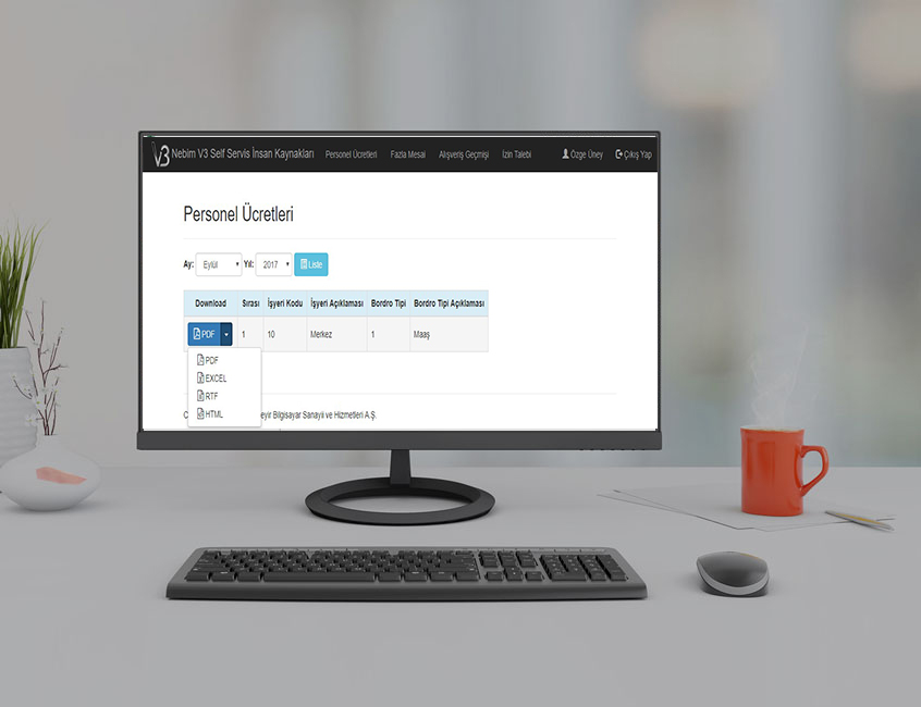 Personelin, geçmiş aylara ait bordrolarını PDF, EXCEL, RTF veya HTML formatında download edebilmesini sağlayabilirsiniz.